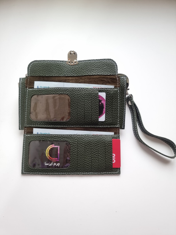 دیدن محصولات مرتبطکیف چهار کاره شامل 10 جای کارت، دوجای عکس، چند جای اسکناس و گوشی و.. است. دارای بند مچی و بند بلند قابل تنظیم که هر دو بند متحرک هستند (بازمیشه و به عنوان کیف پول استفاده میشه)