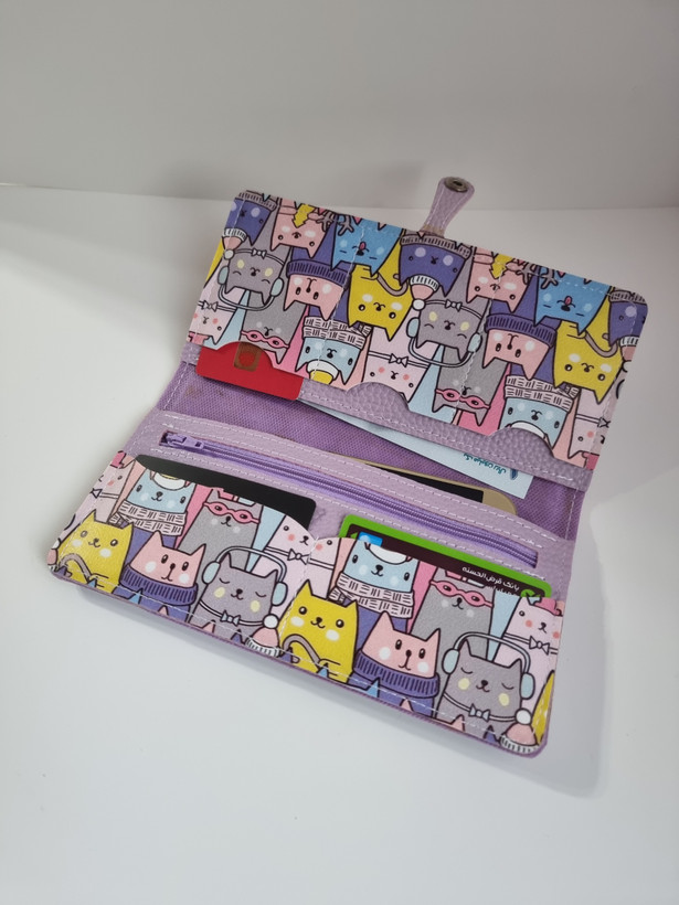 مشاهده محصولات مرتبطکیف پول کتی فانتزی باجنس چرم مصنوعی قابل شستشو هستند و در رنگبندی متنوع ارائه شده. این کیف دارای 5 جای کارت، دو جای پول و گوشی، یک زیپ برای خرده ریز ها و دارای دکمه برای بسته بودن کیف است.